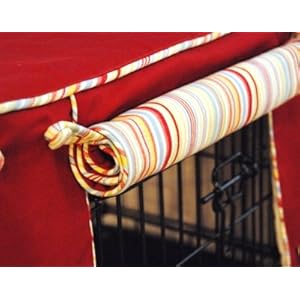 Simply Red with Sierra Cool Blue Cording Double Door Stagecoach Crate Cover. (U.S. Patent Pending) Brilliant fire-engine red twill fabric accented with vibrant striped cording. Sierra Cool Blue cording complements the Simply Red cover with bold stripes of red, yellow, blue, green and white. * Fully lined with no visible seams * Meticulously stitched and detailed like fine upholstery * Finished with contrasting fabric on cording, buttons and loops * Covered buttons are sewn by hand * Crate Covers & More products are proudly made in U.S.A. * Coordinate beautifully with Crate Covers & More?s dog beds * 100% Satisfaction Guarantee Made to fit MidWest Lifestages Double Door Series and select iCrates Double Doors Small – In stock – ships in 2 days LifeStages 1624 24Depth 18Width 21Height