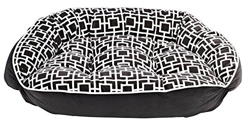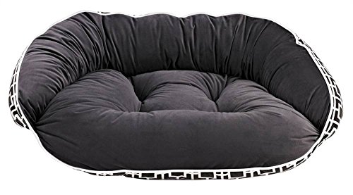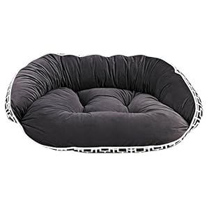 Contemporary style. Polyester fiber fill. Unzip cover and remove inner bolster. Rezip cover, machine wash cover with attached bottom cushion as is on cool cycle. Tumble dry, cool setting. Grey color. Simply flip bed inside out for a great new look! Open front design makes it easy for older dogs to step into this new design. The oval ring creates the feeling of security pets love and dogs will love resting their heads on the supersoft bolster. Zippered cover for washing; tufted bottom ensures fiber doesn’t clump or shift. Reversible design with attractive contrast piping.