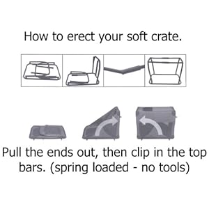 This crate has a strong, tubular frame with attractive soft fabric sides and roll-up window shades.