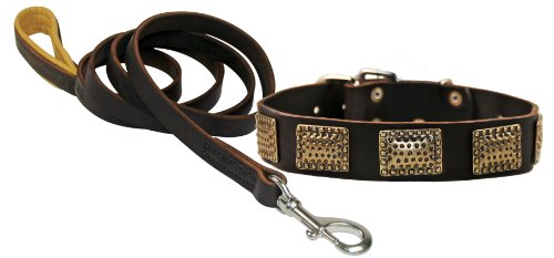 Dean & Tyler Bundle – One “Drum Roll” Collar Nickel 38″ With One Matching “Soft Touch” Leash, 6 Foot With Stainless Steel Hardware – Brown.