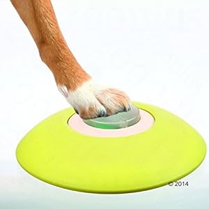 Innovative food dispenser for dogs. Playfully combines physical and mental challenges. With varying levels of difficulty due to the separate release button with a 40m range. Battery operated. The Trixie Dog Activity Memory Trainer is a great new way to test your dog’s fitness and intelligence. This challenging strategy game lets your pet have fun and earn tasty rewards at the same time. The feeder dispenses a delicious snack every time your dog presses the separate release button, keeping him interested in the game and motivating him to come back for more. Materials: synthetic rubber and plastic Colours: cream/green Included in delivery: Food dispenser Release button Additional rubber holder (thermoplastic rubber) for release button Suction cup for securing button to smooth surfaces Peg for securing button in soft ground Scoop for filling food reservoir