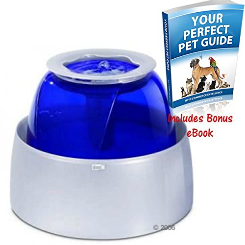 This novel dog drinking fountain is the ideal bowl for your four-legged friend. The raised bowl allows your pet to drink from a comfortable position – especially well-suited for dogs with arthritis, or muscle or joint problems. In the water fountain, the water is constantly circulated so that it continually absorbs new oxygen, giving it a fresh taste.In order to keep the water clean, there is an integrated cleaning filter with active carbon. The pump is very quiet and only requires 2 Watts for economic energy use.Please take note of the following: Depending on how hard the water is, The Dogit drinking fountain should be de-limescaled every 2-4 weeks. The replacement filter for Dogit and Catit drinking fountains comes in a separate package. The filter fits both drinking fountains and should be replaced every 4 weeks. Please note: This device is designed for use in Germany and thus comes with a power adapter for use in the UK.The Bonus eBooks ‘YOUR PERFECT PET GUIDE BY E-COMMERCE EXCELLENCE’ will be sent to you via Amazon message in download form, once your order has been processed.
