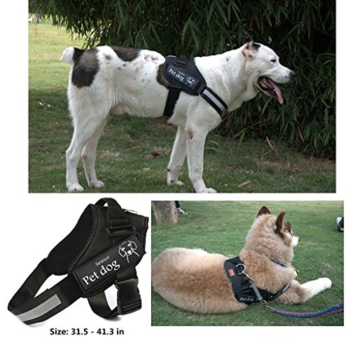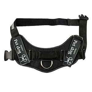 No movement restriction. Very easy to apply, flexible material to allow your dog to move its body parts freely. It helps to reduce pulling, sits low on the chest so there is no throat involvement. If the dog does pull simple pull up on the handle, gently lifting the front of the dog. The Handle on top can be used to lift the dog into a car, etc. There is a loop on top for a mini flashlight, great for those nightime walks. Sizing is easy, fully adjustable reflective chest belt, and fully adjustable girth belt.