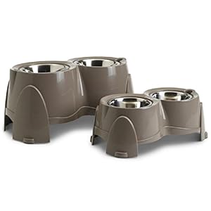 A double bowl stand which makes feeding easier on your dog’s joints. The height of feeding station helps to take the pressure off the spine and stops your pet from gobbling its food. Dark grey. The Savic Ergo Feeder has been specifically designed for dogs with health problems and those suffering from physical problems because of their age. The Ergo double feeder is the right height so your pet does not need to stoop when eating. This relieves pressure on the spine. It also stops your dog from gobbling its food so it helps to alleviate digestion problems. The Savic Ergo Feeder Doggy Bar at a glance: High feeding station for dogs Helps to reduce pressure on the spine Helps stop gobbling which can improve digestion Less mess because your dog is comfortable when eating With two stainless steel bowls Height Feeder size Bowl capacity Bowl size 18.5cm 49 x 28 x 18.5 cm (L x W x H) 2 x 0.85 l Ø 15.5 cm, H 6.5 cm 28.0cm 61 x 35 x 28 cm (L x W x H) 2 x 1.5 l Ø 18.5 cm, H 7.0 cm
