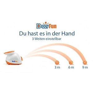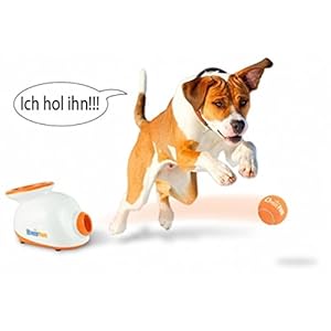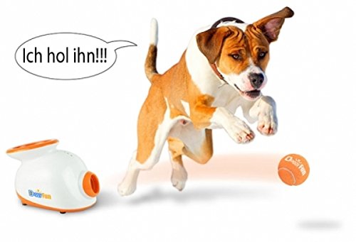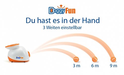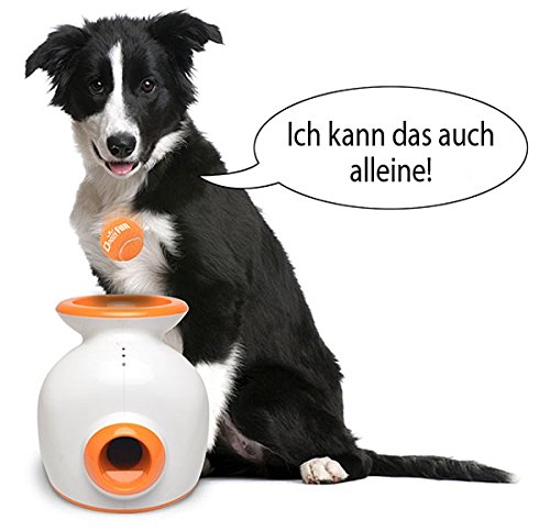The Doggy fun automatic ball launcher is a automatic ball thrower for small dogs. The balls can be various geschleudert (individually adjustable – 3, 6 or 9 meters), creating a hours of fun. The ball light comes with a set of 5 balls so you can easily train your dog. Bring your dog in case the ball back into the for the ball throwing intended hole of your device, please do not hesitate to contact us. It can be be thrown again. The Doggy fun automatic ball launcher can be used inside and out, as the ball launcher with an adaptor and performs with batteries.