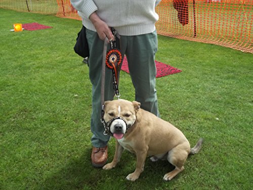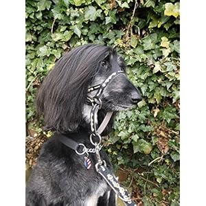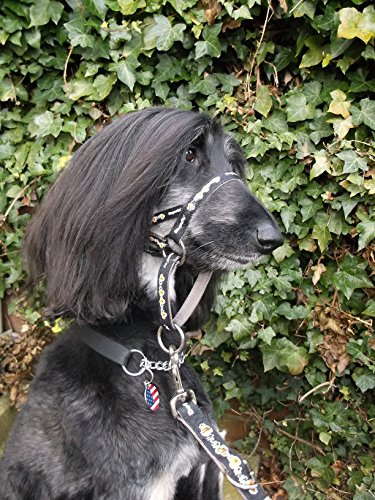 THE DOGMATIC IS VERY COMFORTABLE TO WEAR AND OFFERS COMPLETE BUT GENTLE CONTROL The unique strapping under and at the sides of the chin ensures the Dogmatic stays in place and the nose band does not ride up under or into the eyes which causes distress and discomfort to your dog. The loop under the chin to which the lead is attached works independently of the other straps and can be moved forward, downwards, back, upwards or sideways as required without causing any other straps to lose their position. This means the handler can move and alter their dog’s head position leading to total control. An extra bonus is that, in an emergency, the Dogmatic can be used to close your dog’s mouth and turn it’s head to enable you to keep it safe but the loop immediately releases again, allowing your dog to once again pant, drink, carry a toy, eat a treat… We have combined safety with comfort and use top quality materials, fittings and workmanship. Because your dog deserves the best! If your dog is comfortable, it will pay attention and be more open to training/instruction… without any undue distress. Padded, Cushioned Webbing Range – Our unique Registered Design means it will not ride up, under or into the eyes which causes distress to your pet and as it is much more comfortably and securely fitted, it avoids any potential dangers for you or your dog. The padded, cushioned webbing eliminates pulling and lunging with complete but gentle control. All the comfort and control of the original renowned leather Dogmatic Headcollar with the soft, gentle touch of slimline, luxurious, padded cushioned webbing. SIZE 2 Suitable for Cocker Spaniel dogs, Collie bitches or fine dogs, PBGV’s, Greyhounds, Lurchers etc… For a more detailed sizing guide please visit our website dogmatic.org.uk