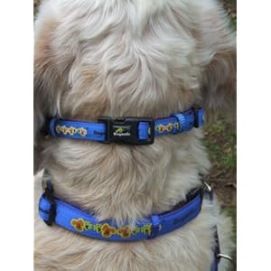Both sides of the neck strap are adjustable with the clasp fastening centrally behind the head, making it easy to fit and quick to release, even with long haired, long eared or wriggly dogs!