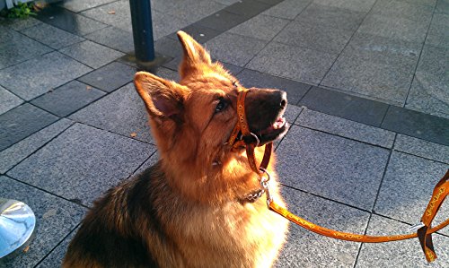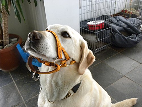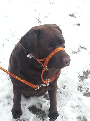 THE DOGMATIC IS VERY COMFORTABLE TO WEAR AND OFFERS COMPLETE BUT GENTLE CONTROL The unique strapping under and at the sides of the chin ensures the Dogmatic stays in place and the nose band does not ride up under or into the eyes which causes distress and discomfort to your dog. The loop under the chin to which the lead is attached works independently of the other straps and can be moved forward, downwards, back, upwards or sideways as required without causing any other straps to lose their position. This means the handler can move and alter their dog’s head position leading to total control. An extra bonus is that, in an emergency, the Dogmatic can be used to close your dog’s mouth and turn it’s head to enable you to keep it safe but the loop immediately releases again, allowing your dog to once again pant, drink, carry a toy, eat a treat… We have combined safety with comfort and use top quality materials, fittings and workmanship. Because your dog deserves the best! If your dog is comfortable, it will pay attention and be more open to training/instruction… without any undue distress. Padded, Cushioned Webbing Range – Our unique Registered Design means it will not ride up, under or into the eyes which causes distress to your pet and as it is much more comfortably and securely fitted, it avoids any potential dangers for you or your dog. The padded, cushioned webbing eliminates pulling and lunging with complete but gentle control. Size 3L Suitable for GSDs, Dobermann dogs, Italian Spinone bitches, Labrador dogs, Retriever dogs, Alaskan Malamutes, Irish Setter dogs, English Setter dogs, Gordon Setter dogs, young Boxers, Dalmatian dogs, Weimaraner dogs, Pointer dogs, Hungarian Vizslas, Rhodesian Ridgeback bitches or fine dogs, Belgian Shepherd Dogs, Large Munsterlanders, Tibetan Mastiffs etc…. For a more detailed sizing guide please visit our website dogmatic.org.uk
