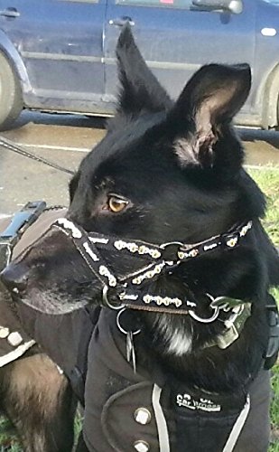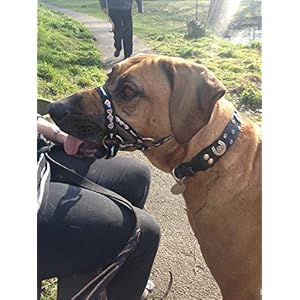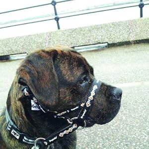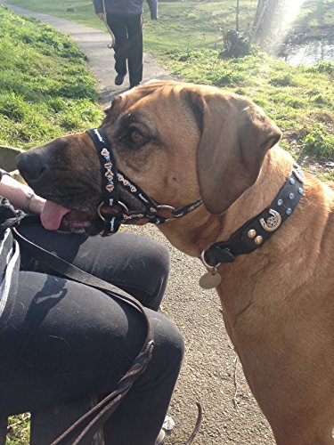 THE DOGMATIC IS VERY COMFORTABLE TO WEAR AND OFFERS COMPLETE BUT GENTLE CONTROL The unique strapping under and at the sides of the chin ensures the Dogmatic stays in place and the nose band does not ride up under or into the eyes which causes distress and discomfort to your dog. The loop under the chin to which the lead is attached works independently of the other straps and can be moved forward, downwards, back, upwards or sideways as required without causing any other straps to lose their position. This means the handler can move and alter their dog’s head position leading to total control. An extra bonus is that, in an emergency, the Dogmatic can be used to close your dog’s mouth and turn it’s head to enable you to keep it safe but the loop immediately releases again, allowing your dog to once again pant, drink, carry a toy, eat a treat… We have combined safety with comfort and use top quality materials, fittings and workmanship. Because your dog deserves the best! If your dog is comfortable, it will pay attention and be more open to training/instruction… without any undue distress. Padded, Cushioned Webbing Range – Our unique Registered Design means it will not ride up, under or into the eyes which causes distress to your pet and as it is much more comfortably and securely fitted, it avoids any potential dangers for you or your dog. The padded, cushioned webbing eliminates pulling and lunging with complete but gentle control. All the comfort and control of the original renowned leather Dogmatic Headcollar with the soft, gentle touch of slimline, luxurious, padded cushioned webbing. Size 5 – Suitable for Larger Italian Spinoni, Rottweiler bitches, Bouvier bitches, Giant Schnauzers etc… For a more detailed sizing guide please visit our website dogmatic.org.uk