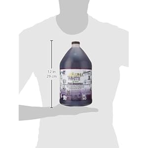 GROOMERS EDGE ALPHA WHITE SHAMPOO 1 GALLON MIDNIGHT White Brightening and Color Enhancing Shampoo. MIDNIGHT WHITE professional shampoo cleans, conditions and brightens white coats, and enhances colored coats. Removes stains and odors. Leaves hair lustrous and healthy with a fresh clean scent! pH balanced especially for animals. The unique formula of MIDNIGHT WHITE with Aloe, Panthenol and Vitamin E gently cleans, while maintaining the natural moisture balance in both skin and hair. Great for dogs, cats, puppies, kittens and all companion and farm animals. Concentrated 15 to 1.
