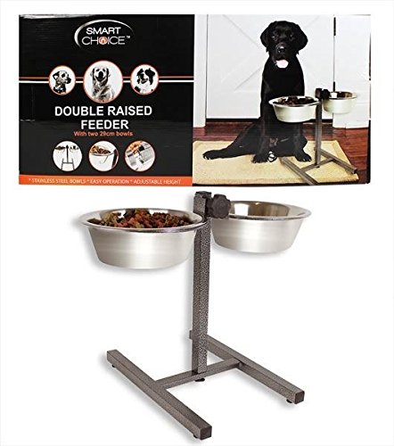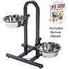 DOUBLE PET DOG BOWLS 29 cm BOWLS STAINLESS STEEL STAND ADJUSTABLE HEIGHT FEEDING STATION NEW