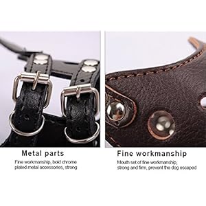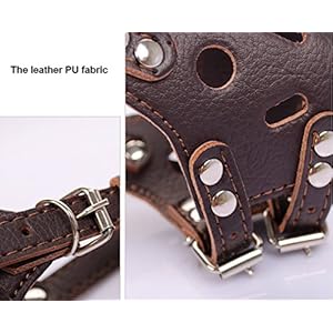 Material: leather, durable and sturdy. Mesh design, well ventilation, designed to fit securely and comfortably on dogs’ snouts