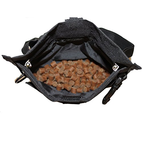 Main pouch has stay-open top to provide quick and easy access to treats.Versatile treat bag that has a drawstring closure to secure treats while not in use