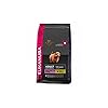 Over the years, Eukanuba have made significant contributions to dog and cat nutrition. Continually investing in innovative research and development, P and G Pet Care was the first to develop and introduce many nutritional breakthroughs. These breakthroughs included the optimal Omega-6, Omega-3 fatty acid ratio for skin and coat health and unique dietary fibre blends to nutritionally manage gastrointestinal health, renal health and glucose metabolism. More recently, a breakthrough DentalCare System, proven to reduce tartar build-up in dogs and cats, has been incorporated into their products and the high level of DHA in their puppy diets has been shown to improve learning abilities. The Eukanuba dog food has clinically proven antioxidants to help build your dog’s natural defences and optimum levels of Omega-6 and 3 fatty acids to promote a healthy skin and a radiant coat, also proven to help reduce shedding by up to 80%. This Eukanuba Senior dog food which has been developed with veterinarians and is recommended by top breeders, includes high quality, animal-based proteins, clinically proven to help maintain strong and lean muscles, and calcium to help support strong bones. The 100% complete and balanced food is formulated with prebiotics and clinically proven beet pulp to promote digestive health and optimise nutrient absorption. The tasty food has been enhanced with L-Carnitine to help your dog burn fat and maintain a healthy weight and is ideal for large breed dogs, thanks to its natural sources of Glucosamine and Chondroitin Sulphate that help support healthy joints. Every Eukanuba Mature and Senior Dry Dog Food diet has 3D DentaDefense technology, which cleans with every bite, reduces tartar build up in 28 days by up to 80% and helps your dog maintain strong teeth. The delicious food helps support the natural defences of an ageing dog with optimal levels of beta-carotene and vitamin E and is free from artificial flavours or artificial colourants.