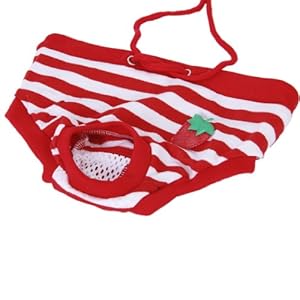 Female Pet Dog Hygienic Sanitary Diaper Pant Brief for Small Dog (Red and White Stripes, L)