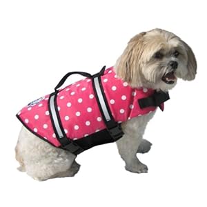 Paws Aboard Pet Life Jacket and Designer Pet Life Jackets provide ultimate buoyancy and high visibility to keep pets safe on the water. Constructed to provide buoyancy, along with a cozy secure fit, the Paws Aboard Pet Life Jackets features: An advanced breathable mesh underbelly for proper draining and drying, which provides your dog more comfort and healthier conditions than traditional pet life jackets, which can cause heat exhaustion and chafing. Features: New reflective strips for maximum visibility. Bright colors and unique designs. Handle on top for quick and easy grabbing. Adjustable nylon straps. Quick-release buckles. Heavy-duty yet more comfortable Velcro? fastening system around the belly and neck to keep securely fastened. Extra Extra Small (1100): Weight: 0 – 6 lbs. Length: 6.5 inches. Neck Girth: 7 – 9 inches. Body Girth: 11 – 16 inches. Extra Small (1200): Weight: 7 – 15 lbs. Length: 8.5 inches. Neck Girth: 8 – 12 inches. Body Girth: 15 – 19 inches. Small (1300): Weight: 15 – 20 lbs. Length: 11 inches. Neck Girth: 12 – 20 inches. Body Girth: 17 – 22 inches. Medium (1400): Weight: 20 – 50 lbs. Length: 14 inches. Neck Girth: 20 – 25 inches. Body Girth: 21 – 30 inches. Large (1500): Weight: 50 – 90 lbs. Length: 16 inches. Neck Girth: 24 – 30 inches. Body Girth: 30 – 37 inches. Extra Large (1600): Weight: over 90 lbs. Length: 20 inches. Neck Girth: 29 – 34 inches. Body Girth: 36 – 44 inches.