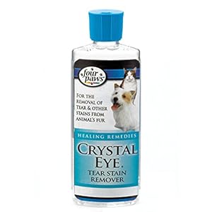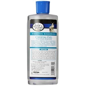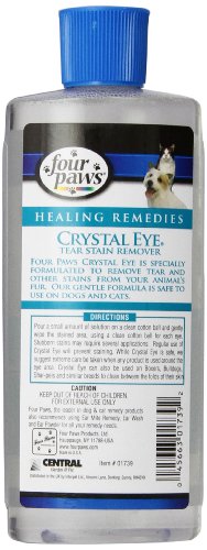 Four Paws Crystal Eye liquid is specially formulated to remove tear and other stains from the animal’s fur. This gentle formula is safe to use on dogs and cats. Crystal Eye liquid can also be used on Boxers, Bulldogs, Shar Pei’s and similar breeds to clean between the folds of their skin.
