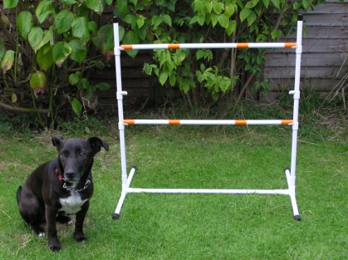 Freestanding dog agility jump with jump pole cups set to agility heights. (due to amazons new postage policy we can only post this item to mainland uk (England, Wales, and Scotland only))