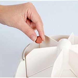 The segments release the treats in adjustable 30 or 60 minute intervals when the beep sounds.
