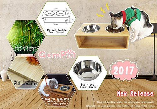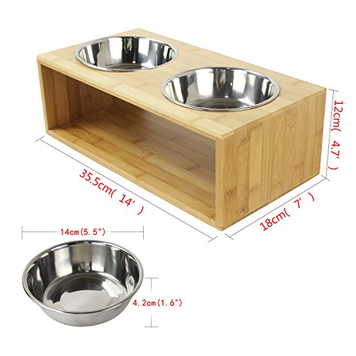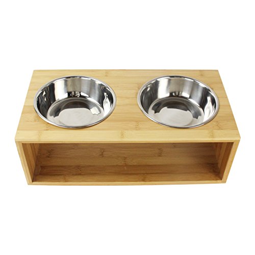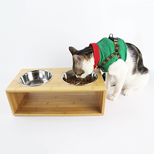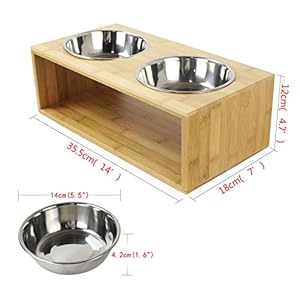 •STYLISH:This modern design with a warm finish naturally fits your home and lifestyle. Especially the elevated pet bowl stand is well made with no moving or detachable parts so it will be forever sturdy. Pet bowls are secured inside the bamboo stand and anti-slip feet prevent your pet from sliding his bowl around and damaging your expensive floors.