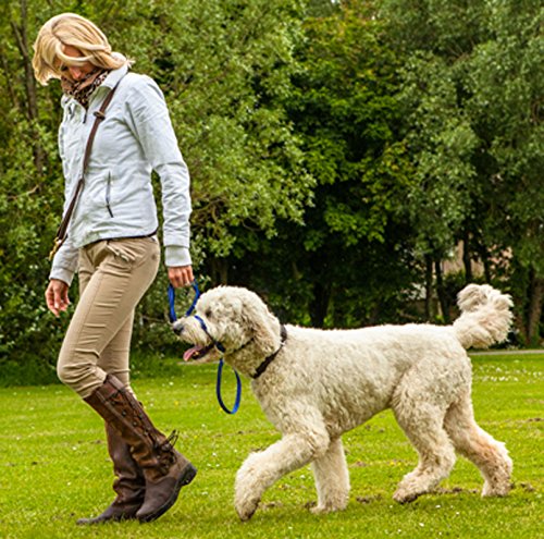 If your dog pulls on the lead, walking can be a pain instead of a pleasure! The Gencon all in one is recommended by several dog trainers as the most effective tool to use to stop your dog from pulling on the lead. The standard gencons are made to walk the dog on your left hand side. Special, right hand gencons are also available. Gencons consist of two loops; one goes over the nose, the other round the neck. When the dog pulls, both loops tighten, restricting the whole head, the dog backs off from the restriction, in other words STOPS PULLING! The action is from the side of the head and is very gentle, it does not pull your dog’s head round and will not ride up into your dog’s eyes. All Gencons are made from the same material as equine headcollars and ensure maximum strength and durability whilst being soft to the touch. ALL-IN-ONE This is the head collar and lead built in as one unit, with a handle at one end. The action of the lead comes from the side of the head behind the ear and is very gentle. Ideal for: any dog