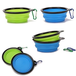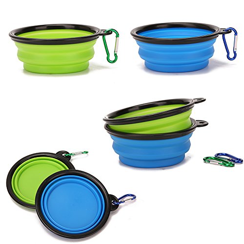 Comes with 2 pack of foldable silicone bowls,Lightweight and portable,easy pop up and fold away, great for traveling, suitable for all size dogs and cats .