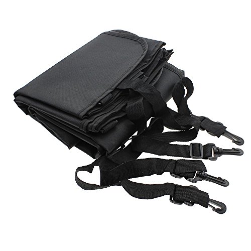 Equipped with adjustable buckle clips that strap around the head rest posts in front and behind the hammock
