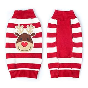 Cute Festive Christmas Grey & Red Dog Cat Warm Winter Knit Reindeer Jumper Rudolph Plaid Antlers