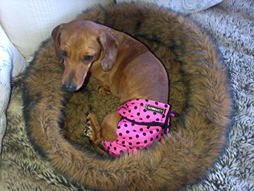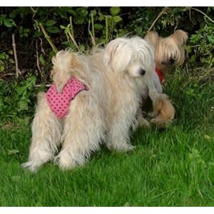 Female dog pants help keep mess off your furniture and carpets during your girl’s season as the disposable sanitary towel or washable pad you place on the inside of the pants absorbs this.