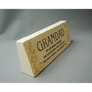 Freestanding outdoor graveside plaque Cream with Brown text Vine detail each side of plaque The Plaque measures 25.5cm wide x 9.5cm high x 4.5cm/2.5cm deep GRANDAD We will always remember That special smile, that caring heart, that warm embrace you always gave us.
