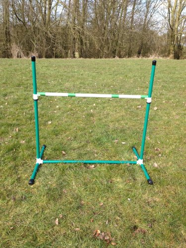 Jump pole will stay up even in high winds but will fall if hit by the dog.