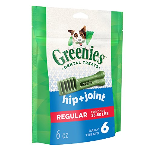Contains one (1) 6-oz., 6-count pack of GREENIES Hip and Joint Care Dental Chews Regular Dog Treats