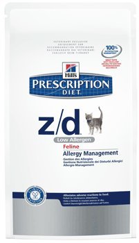 Hills Prescription Diet Feline Z/D Low Allergen for the Nutritional Management of Cats with Food Allergy and Intolerance.Food allergy and intolerance, also called adverse reactions to food, can cause serious skin and stomach problems in your cat. This condition is usually an abnormal response to a specific protein in food. Hills Prescription Diet Feline Z/D Low Allergen has an exclusive ingredient called Hills Hydrolyzed Protein System, a process that eliminates animal intact proteins and significantly reduces the possibility of an adverse reaction to food. For cats, most allergic reactions occur as a result of beef, dairy products and fish. Hills Prescription Diet Feline Z/D Low Allergen eliminates these.Indications: Food allergy or food intolerance (i.e Dietary sensitivity or Adverse reactions to food). Use as an Elimination Diet. Pruritic dermatitis and/or chronic otitis externa. Chronic gastroenteritis and/or colitis. Key Benefits:Protein – Single animal source: chicken. Extensively hydrolysed to a maximum molecular weight of 3,000 daltons. Reduced amount – Minimises initial allergic sensitisation. Minimises subsequent allergic reaction. Carbohydrate – Single source: rice – Allergy to rice is rare in cats. Essential fatty acids – Increased – Helps nourish the skin and coat. Digestibility – High – Ensures nutrient availability for patients with compromised digestive tracts. Superior antioxidant formula – Added – Reduces harmful free radicals. Skin cells are particularly vulnerable to oxidative damageIngredients:Ground rice, rice protein concentrate, chicken liver hydrolysate, vegetable oil, dried chicken liver hydrolysate, calcium carbonate, cellulose, potassium chloride, dicalcium phosphate, salt, calcium sulphate, taurine, vitamins and trace elements. Contains EU approved antioxidant.Warning:Not recommended for Kittens, Pregnant or lactating queens or Cats concurrently receiving urinary acidifiers. It is re