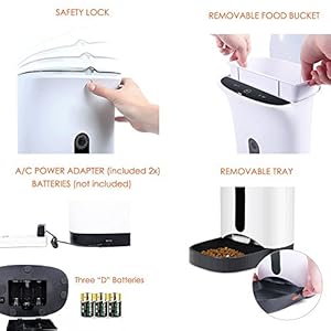Powered by AC Cable (2pcs included) or 3 d Batteries (not included). Batteries are ONLY as Prevention from Power Outage. To Use Application, Feeder Must Be Plugged in. We Recommend WEEKLY Maintenance. Instruction Manual Included.