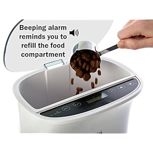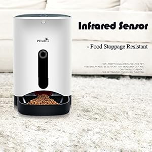 Home-Neat Pet Automatic Feeder has special sensors. If there no food in the bucket, You will receive the message on your mobile device so you know it’s time to refill the feeder. The same message will be sent if the food gets stuck or if there is too much food in trey.