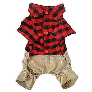 British Stylish red lattice shirt with overalls jumpsuit design, suitable for any occasion.
