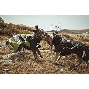 The Hurtta Ultimate Warmer is a warm and waterproof jacket for your dog. This jacket offers your dog protection in extended outdoor activities in cold conditions. This jacket has been designed with the range of motion of active (working) dogs in mind. The coat has a high adjustable collar and a longer back to keep the large muscle groups that active dogs use warm. The elastic straps around the hind legs make sure that the jacket stays in place even during the most active activities.