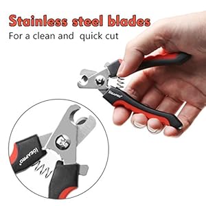 The dog grooming clippers is safely Outfitted with a safety stop blade that greatly reduces the risk of cutting nails too short and injuring your dog by cutting in to the quick