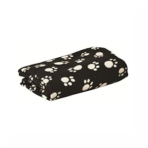 Warm and cosy pet blanket perfect for winter cold nights use on the sofa or in the car to cover the seats. Cute white paws on black background. Made from 100% Polyester machine washable. Dimensions: 120cm x 145cm