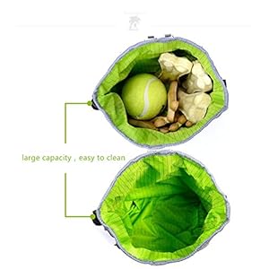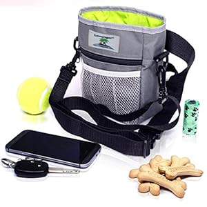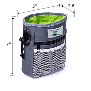 Well Design:The adjustable belt make you can wear the bag around your waist, carry it over your shoulder or nip it on your leather belt.Two separate zippered pockets hold treats or personal itemsDrawstring closure ensures that it will secure treats.
