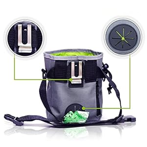 Little Gift:a separate zipped pocket on the back of the treat bag with a rubber plug to help you tear of the waste bags from the roll inside.