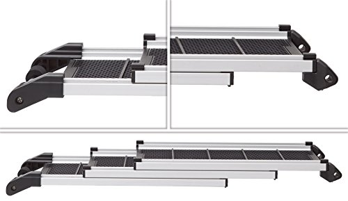 3-Section Expandable Ramp Adjusts from 28.75 – 64;Extremely Lightweight, Strong and Easy to Transport and Use;Incredibly Smooth, Trouble Free Opening & Closing;German Engineering & Design;Supports up to 187lbs