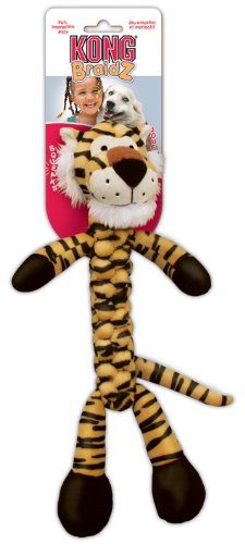 Soft dog toy made from strong material which is tightly braided for strength. The stretchy and tough weave helps floss and clean teeth during play, and a squeaker adds to the excitement. Perfect for interactive games of tug. Not intended for chew sessions. Available in four fun characters: Tiger, Monkey, Giraffe and Zebra. Available in three sizes: Small, Medium, Large.