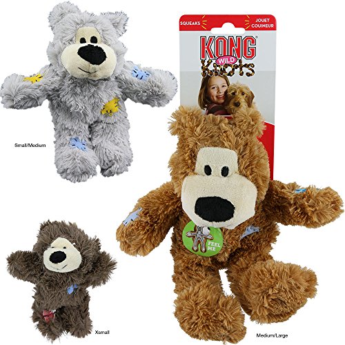 This Wild Knots Bear is a soft and cuddly toy yet durable on the inside with the reinforced plush body. The internal knotted rope skeleton will satisfy your pooches natural instincts. KONG Wild Knots Bears have less stuffing for less mess, and they squeak too! Supervised play only.