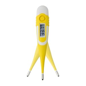 Digital thermometer with flexible tip. Waterproof, with signal sound memory function and battery status indicator. Measuring range: 32.0 – 43.0 °C (180 °F) with battery LR4 and a protection case