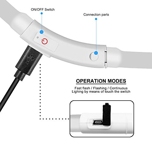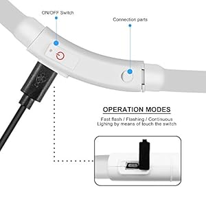 3 light setting This dog led collar can be set to quick flash, slow flash or steady glow by pushing the button. (easy to use)