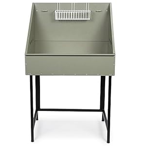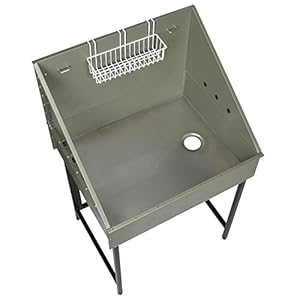 Basin is made of 16-gauge zinc-plated, powder-coated steel, with a rust-resistant stainless steel bottom panel