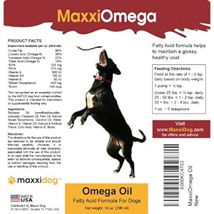 MaxxiOmega oil is a comprehensive fatty acid formula for dogs. MaxxiOmega is formulated for results.