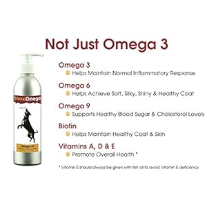 MaxxiOmega is formulated for results. Omega 3 is anti-inflammatory (contains EPA & DHA) and offers various health benefits for dogs. Omega 6 is essential fatty acid and the best fatty acid for healthy skin and glossy coat. Omega 9 controls blood sugar and cholesterol. Biotin supports and maintains healthy skin and hair and strengthens nails. Vitamins A, D & E offer overall health benefits (and Vitamin E is necessary with fish oil supplementation to avoid Vitamin E deficiency)
