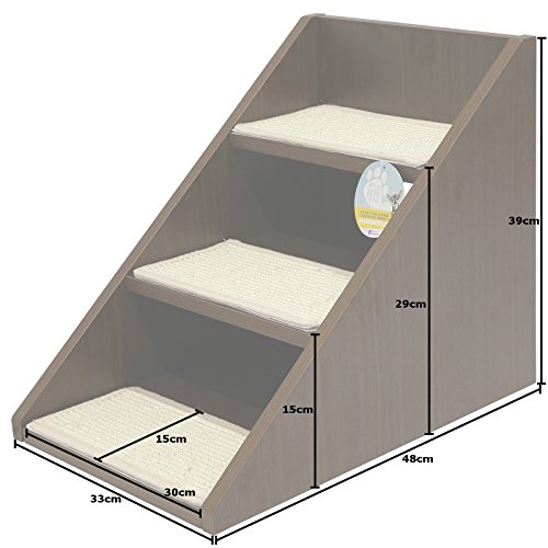 Me & My Pets 3 Step Pet Stairs – Dark Wood Effect Finish with Removable Sisal Step Pads
